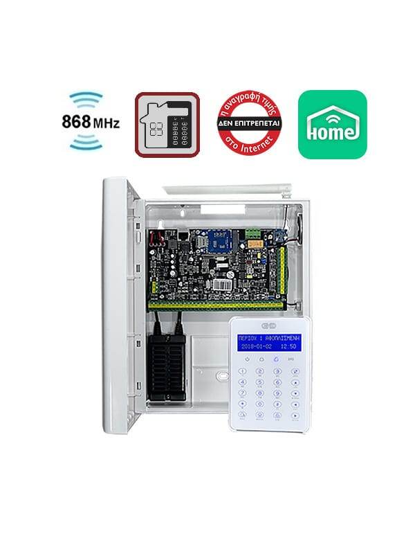 - Διαθέτει 16 ενσύρματες και 64 ασύρματες ζώνες 868MHz στην κεντρική πλακέτα